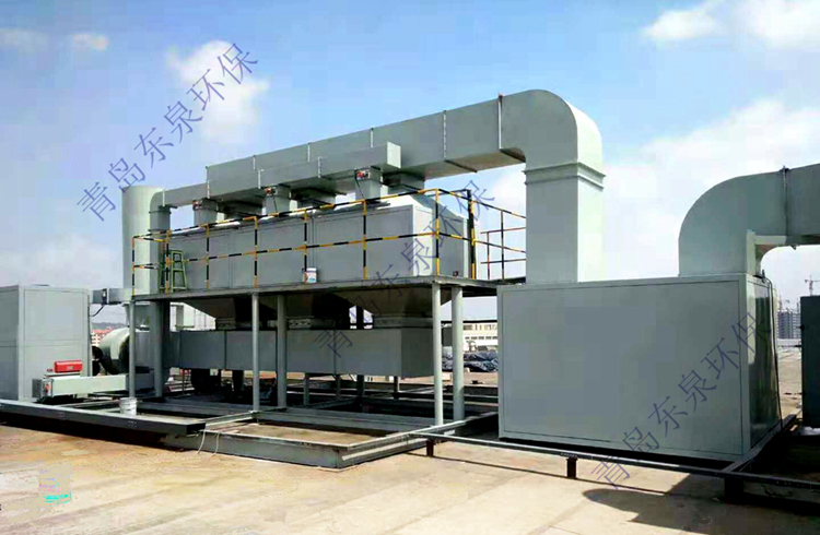 漆霧廢氣催化燃燒設備針對中低濃度廢氣,利用吸附-催化燃燒工藝進行回收凈化的過程如下:有機廢氣經(jīng)去除粉塵等預處理后,進入裝有高效吸附劑的吸附器,空氣得到凈化。隨著吸附的進行,吸附劑逐漸達到飽和,在與高溫熱空氣的接觸過程中,有機廢氣被脫附下來形成高度濃縮的廢氣,同時吸附床得到再生。再生后的吸附床又可進行吸附作業(yè)。經(jīng)脫附形成的濃縮廢氣進入催化燃燒器,生成二氧化碳和水達標排放。