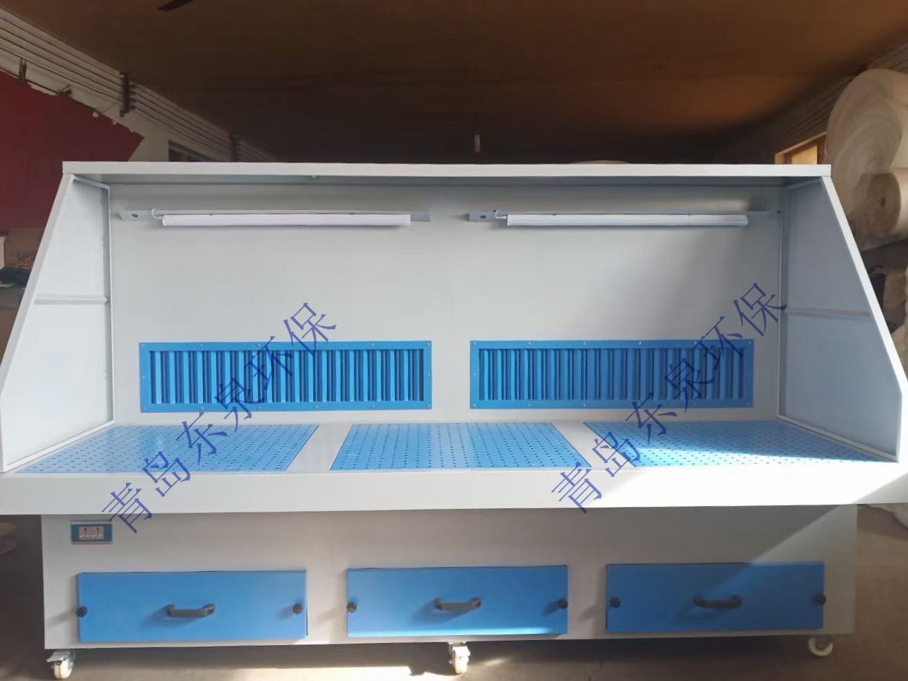 1、抽風(fēng)工作臺進風(fēng)口處設(shè)置一導(dǎo)流板,用于防止灰塵直接沖擊濾芯,從而延長濾芯的適用壽命。 2、風(fēng)機采用高效離心風(fēng)機,具有高效,運行平穩(wěn)等特點。