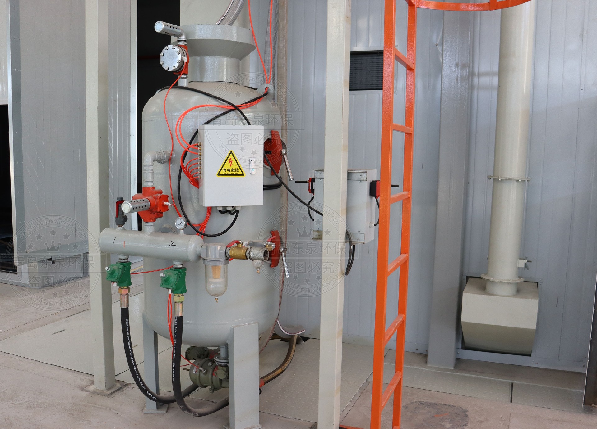 4)砂料分選采用過濾網式篩選,把大的雜物擋在噴砂機之外,細微粉塵由除塵系統(tǒng)進行吸收,從而保證砂料的均勻性。